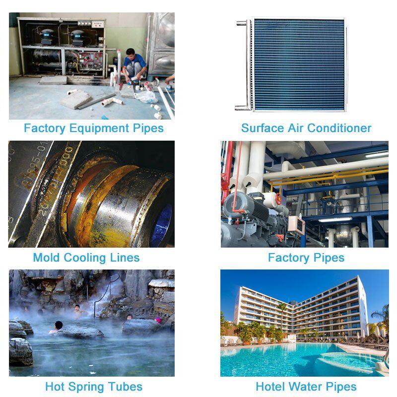 It can clean all the pipes in the house, including hot and cold water pipes in the bathroom and kitchen, and the water supply pipe for the washing machine. In terms of a singular house, there are at least 11 pipes that need to be cleaned. The higher the floor is, the longer the pipes (which need to be cleaned) will be.